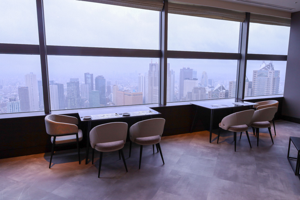 53階という特別なロケーションからは、ガラス越しに広がる東京の街並みを一望。