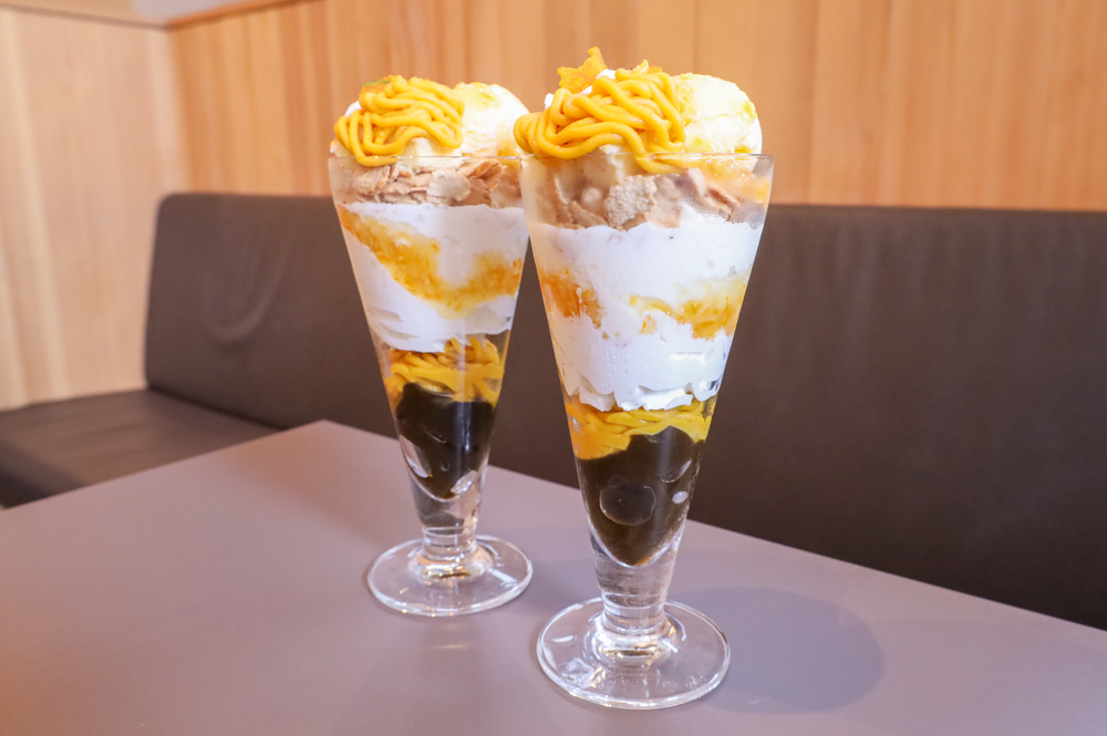 甘くてやさしい風味の中に、どこか懐かしさを感じる味わい。秋のティータイムにぴったりのドリンクとして、パフェとの相性も抜群です。
