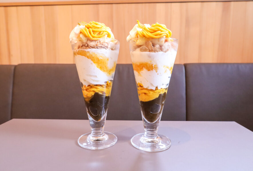 かぼちゃのモンブランパフェ(1,490円)は主役となるのは、北海道産のえびすかぼちゃ。その濃厚な甘みを生かしたモンブランクリームは、口に入れた瞬間にふんわりと広がる自然な甘さが魅力です。